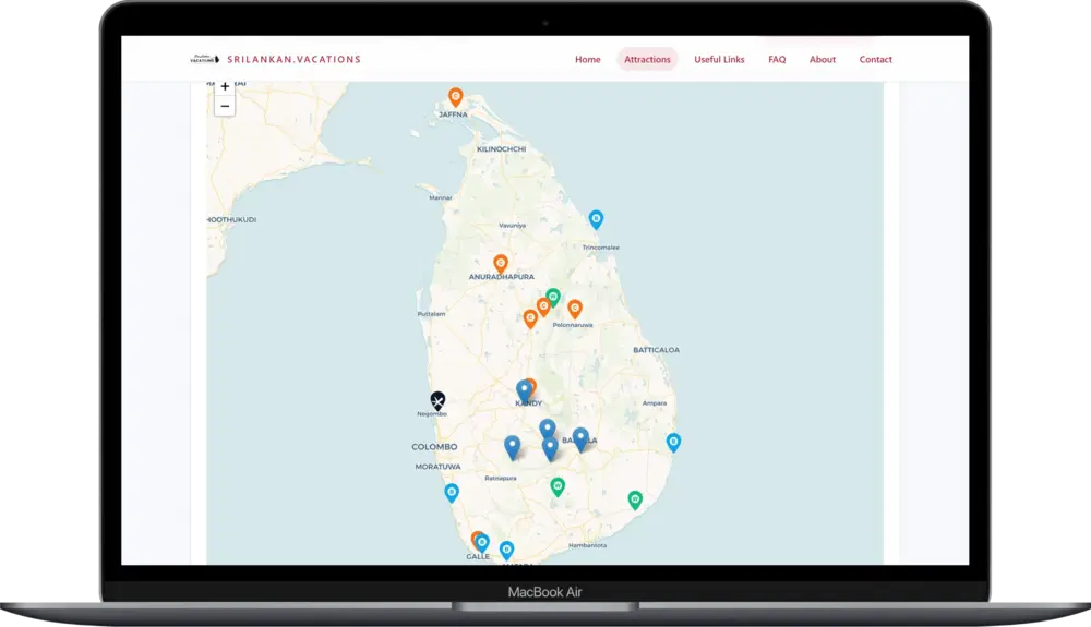 The Problem: Most travel sites just give you a list: “Go to Sigiriya, then go to Ella.” But without seeing where those places are, planning a route is a headache. I wanted to give users a bird’s-eye view, but interactive maps often make websites clunky and slow.